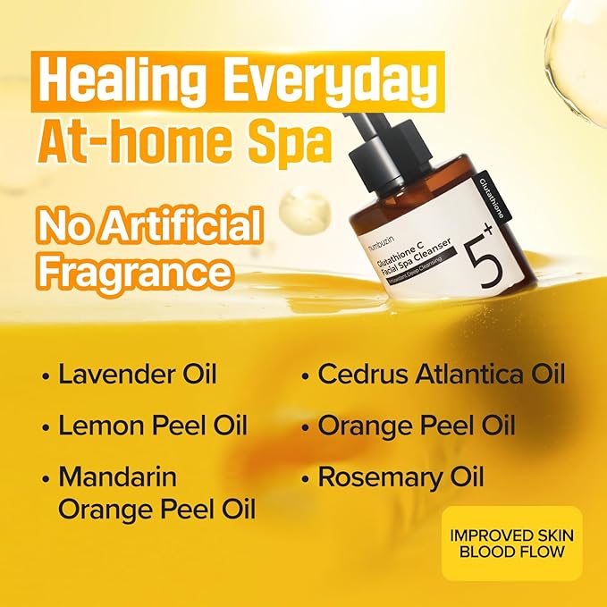 Melt away makeup, sunscreen, and impurities with Numbuzin No. 5 Glutathione Vitamin Facial Spa Cleanser! This aromatic oil cleanser is packed with Glutathione, Vitamin C, and Niacinamide to brighten skin, even out skin tone, and provide antioxidant care. Infused with Rosemary & Lavender Oil, it helps boost circulation while leaving skin soft and refreshed. The lightweight oil formula emulsifies effortlessly, ensuring a deep cleanse without irritation.