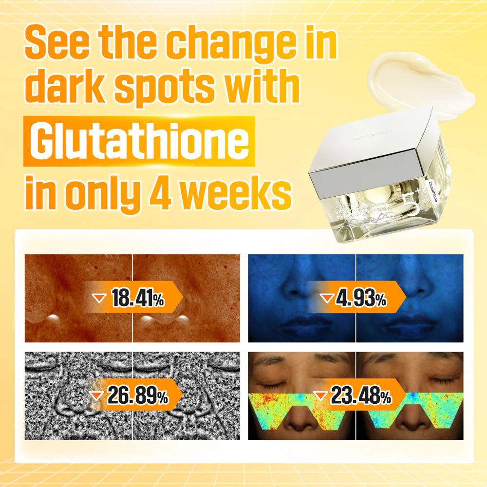 - Enriched with Glutathione and L-Cysteine, it effectively fades dark spots to restore a brightened skin.